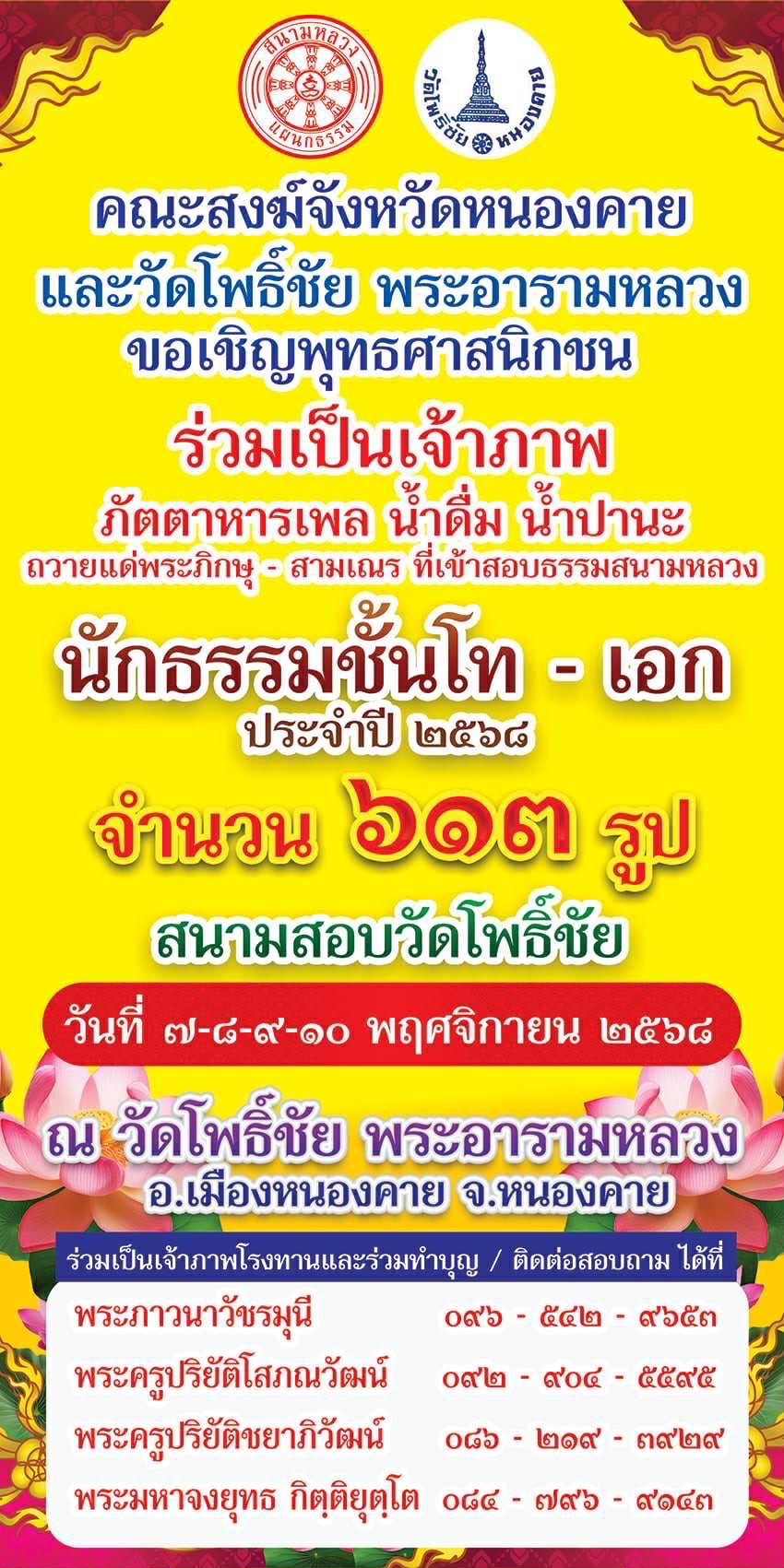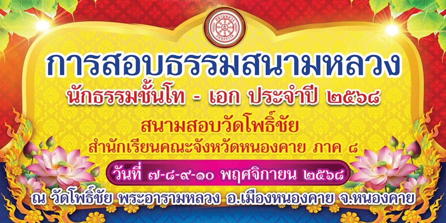 การสอบธรรมสนามหลวง นักธรรมชั้นโท - เอก ประจำปี ๒๕๖๘