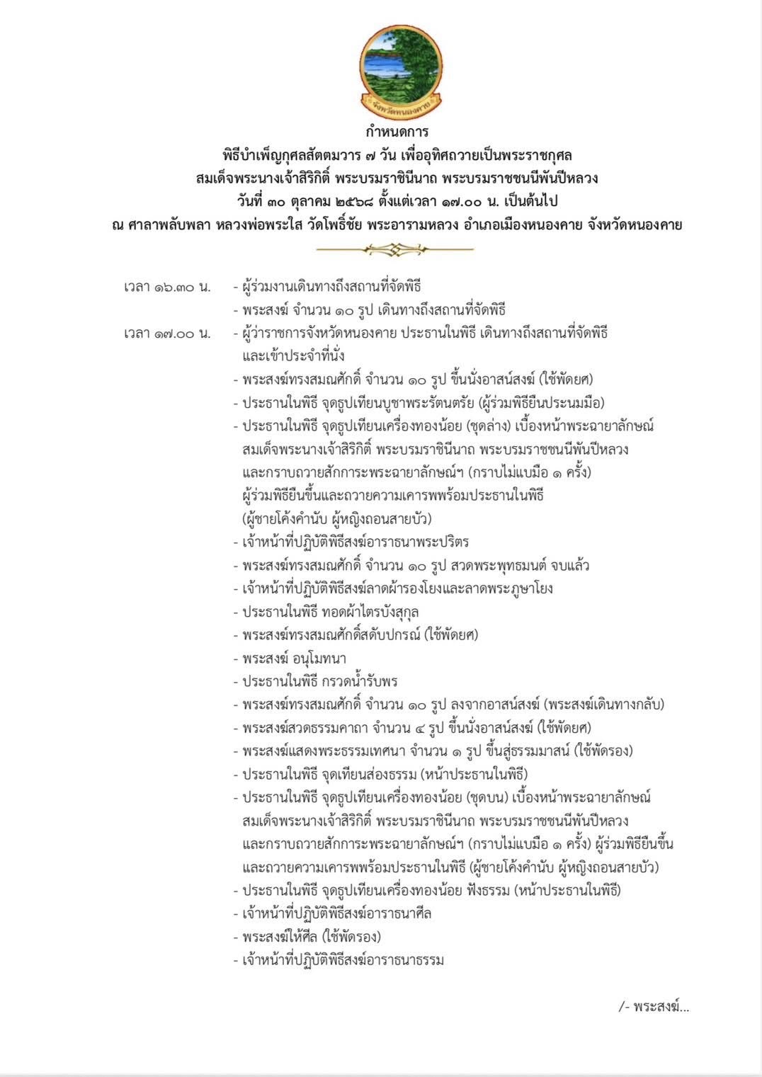 พิธีบำเพ็ญกุศลสัตตมวาร (๗ วัน) ถวายเป็นพระราชกุศล สมเด็จพระนางเจ้าสิริกิติ์ พระบรมราชินีนาถ พระบรมราชชนนีพันปีหลวง